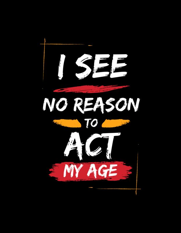 A slogan tshirt design that says "I See No Reason To Act My Age"